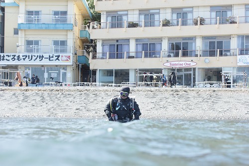 後ろに見えている建物が、ダイビングの休憩施設であり