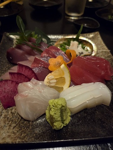 海鮮とお酒を楽しんで
