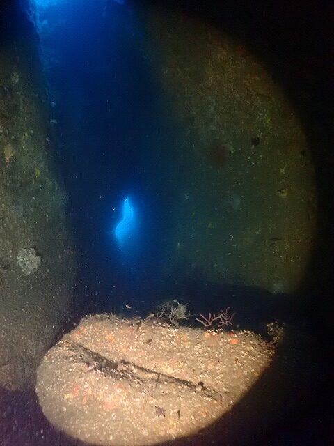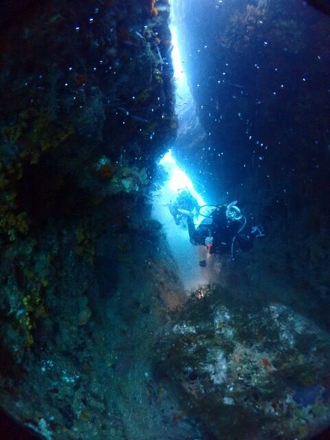 水深35mの横穴です