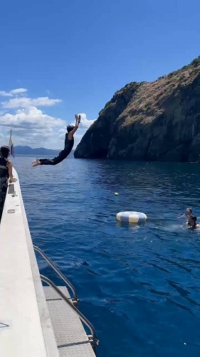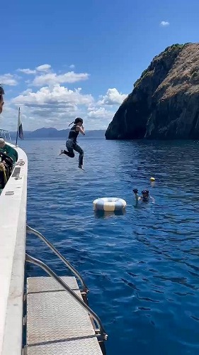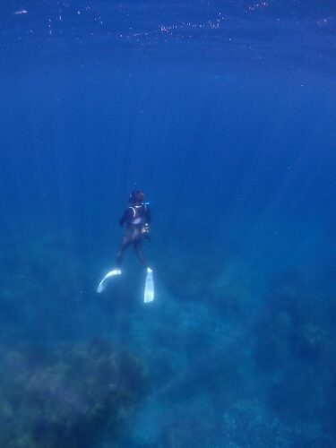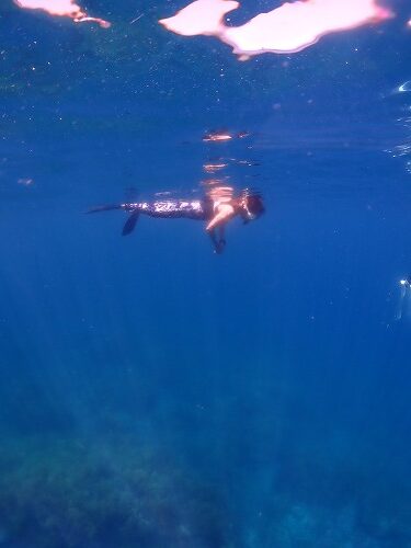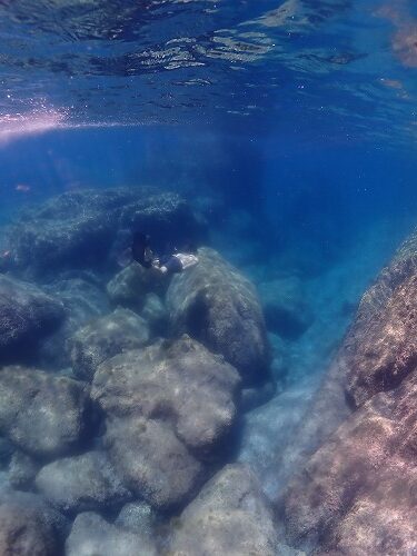 飛び込んで、スノーケリングしてスキンダイブするんです