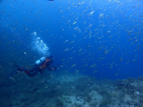 イサキにスズメダイに、まるで魚のシャワーですよ