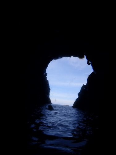 海の中が暗くなりだしたら洞門に到着!