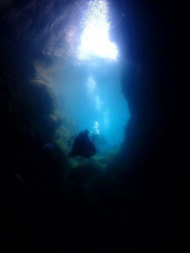 水中洞窟では、明暗コントラストがキレイなんですよね~