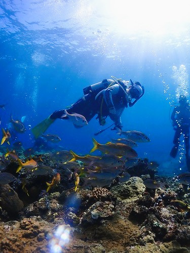 水深が深いので 目的地までの道中は浅い水深を中性浮力を保って進みます