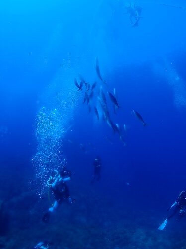 潜ってすぐにツムブリが私たちの周りをグルグル