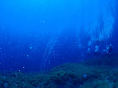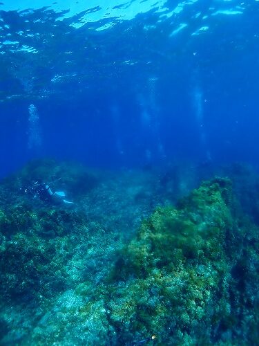 光が射し込む浅場は海藻のグリーンが美しい・・・