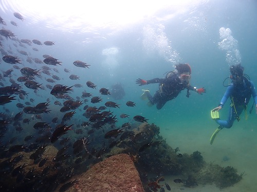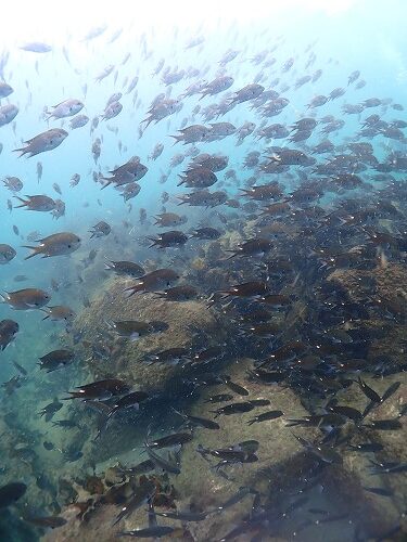 沖の漁礁はスズメダイ祭り!